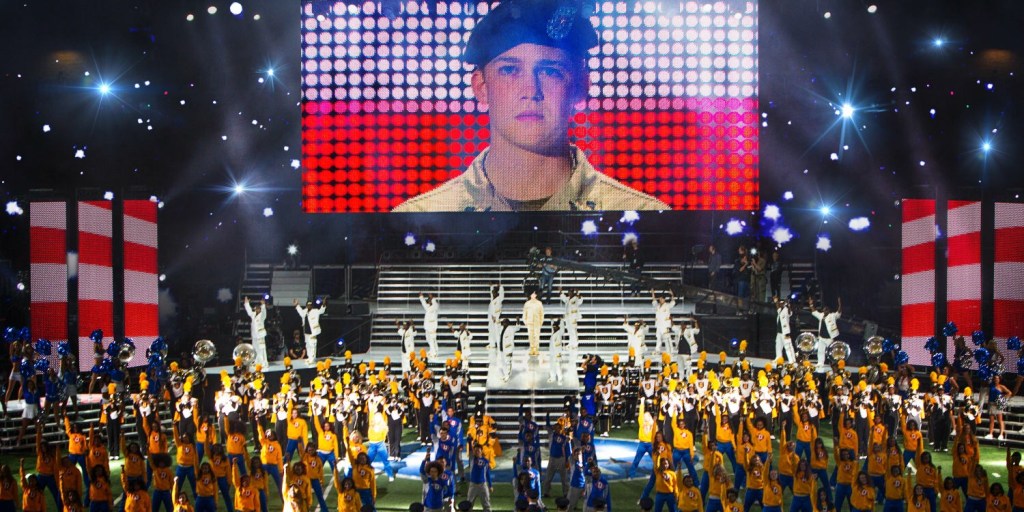 Throughout the film, civilians approach members of “Bravo Squad” to ask questions or make comments, and the encounters inevitably turn painful as it’s revealed the civilians are clueless about the soldiers’ motivations and experiences. It becomes clear the pageantry and praise for the soldiers is more about the civilians’ own feelings than it is honoring the soldiers’ bravery under fire.