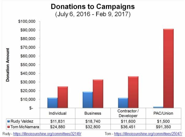 In local elections, political parties matter very little–at least in Illinois. You have to look at who is beholden to whom. No one donates thousands of dollars to a candidate expecting no return on investment. Look at McNamara’s top 25 investors. The guy raised over $240,000 from unions and developers for a job that pays $110,000 a year. Is it any mystery who will be running the show?