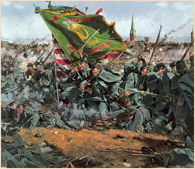 According to an apocryphal story, Confederate General Robert E. Lee coined the phrase “Fighting 69th” at the Battle of Fredericksburg, when he saw how bravely and tenaciously they charged the Confederate line. The 69th suffered 60 percent casualties at the Battle of Antietam, and all but ceased to exist after Fredericksburg.