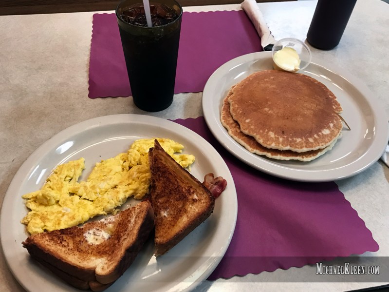 I liked the atmosphere and decor at the Knotty Pine. There is counter seating, booths, and plenty of table space for larger groups. I ordered the Knotty Pine Breakfast Combo, which as you can see from the above photo, is enough for one person but you won’t have any leftovers. I also had a Diet Coke (of course), and my total came to $11.10. My eggs were well done, not runny, just the way I like them. On my visit they were offering a special omelet, spicy ham and pepperoni with hash browns.