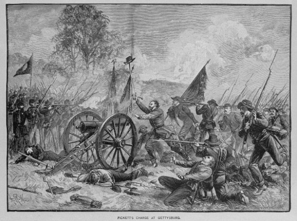 This song loosely describes the events of July 3, 1863, the third day of the battle, and its title refers to Pickett’s Charge, what many believe was the “high tide” of the Confederacy. Like The Killer Angels and Gettysburg, the song describes Pickett’s Charge mostly from Confederate Brigadier General Lewis Armistead’s perspective, with exchanges between General Robert E. Lee and First Corps commander Lt. General James Longstreet. Armistead was a brigade commander in Major General George Pickett’s division, who famously raised his hat on his sword and led a final desperate push into Union lines.