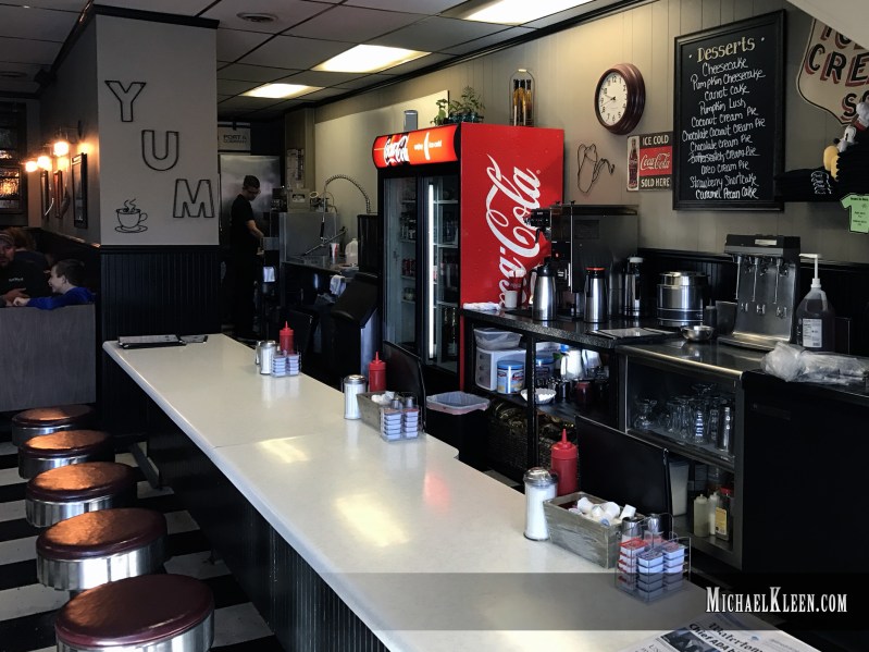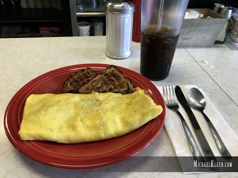 When I visited, I was impressed with the diner’s cleanliness, bright atmosphere, and local pride, but not its wait time. I made the mistake of waiting to be seated and was left standing by the register for quite some time before I realized I could just seat myself. I decided to take a spot at the counter. Even as the only person at the counter, it took at least ten to fifteen minutes before I even got a menu. Despite feeling invisible, my omelet was good (loaded with meat), and they offered a wide selection of toast.