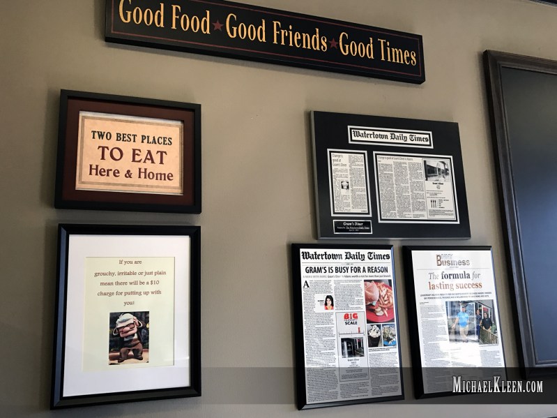 Gram’s Diner is located at 13 Main Street in Adams, New York. Phone number: (315) 232-4881. They are open Monday through Friday, 6 a.m. to 8 p.m., Saturday from 7 a.m. to 2:00 p.m., and Sunday, 8 a.m. through 2:00 p.m.