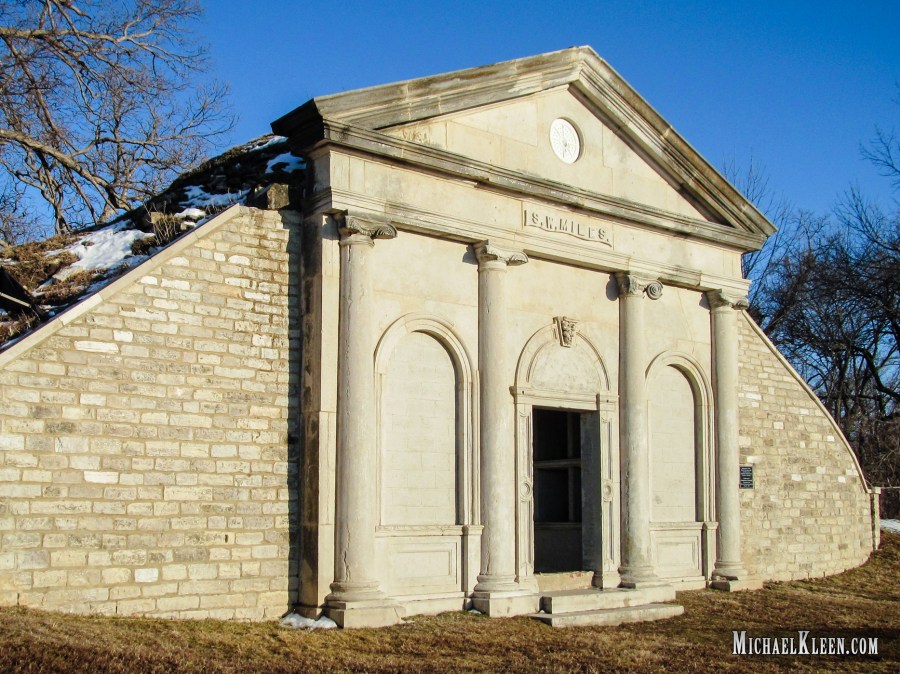 Stephen W. Miles was a violinist with pretensions of greatness. Bit by bit, he purchased over a thousand acres of bottom land in Monroe County and made a small fortune. Eventually, he commissioned a mausoleum to be built on a bluff in Eagle Cliff Cemetery, where he could see his land “for miles and miles.” Completed in 1858, the mausoleum cost $25,000 and was made from Italian marble. It contained 56 burial vaults. Unfortunately, Miles’ son went bankrupt and lost his father’s estate. Only eleven individuals were ever interred in the crypt.
