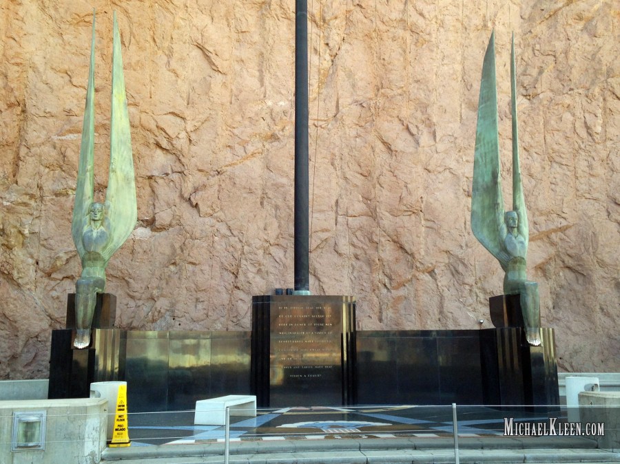 Like many buildings and structures from the 1930s, its chief architect, Gordon B. Kaufmann, designed it in Art Deco style. Norwegian-born sculptor Oskar J.W. Hansen designed the famous sculpture of two bronze, winged figures. Beneath them he placed a map depicting the exact position of the stars in the Northern Hemisphere the day President Franklin D. Roosevelt dedicated the dam.