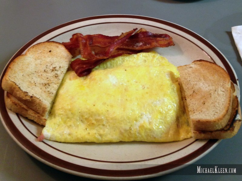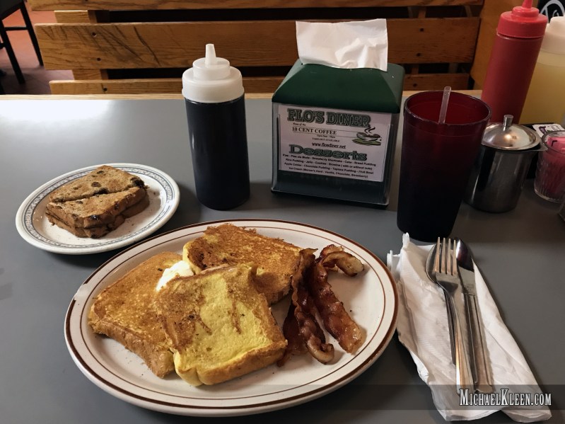 Flo’s has an extensive, traditional diner menu. It’s seven pages long. They serve breakfast, lunch, and dinner. There are no surprises here, except perhaps for the “Fretta” (frittata?), which they categorize into “Flo’s Slop” w/Meat and “Flo’s Slop” w/Veggies. Mmm.. For lunch, they offer Super Burgers, an 8-ounce hand-shaped ground beef patty. The most expensive item on the menu is a Seafood Platter for $15.75, but that is way outside the average. Most items are below $6. Entrees range from $7.75 to $10.95.
