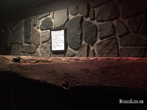 After the short dramatic reenactment, the audience is led downstairs into “the dungeon.” Here you can see a beam allegedly saved from the original witch dungeon at 4 Federal Street by Carlton C. Lutts in 1956, loaned to the museum by his wife. If true, it’s an interesting curiosity.