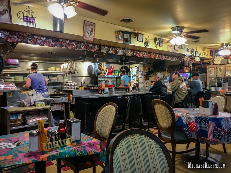 Their menu is simple and printed on two sides of an 8.5 x 11 piece of paper folded in thirds. Breakfast is served all day. In addition to the Bird ‘n’ Nest, they offer several other custom dishes, including the Mykenny, Crazy Papa’s, and Dickie Do. The Mykenny is just 2 sausages, 2 slices of bacon, 2 eggs, potatoes, and toast for $8.95. They serve homemade sausage.
