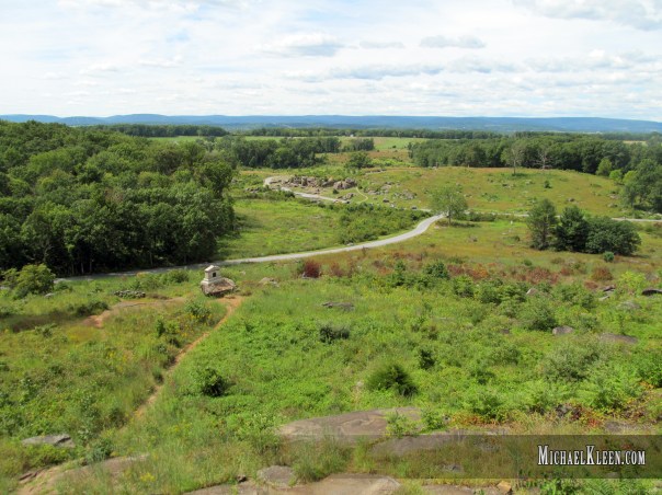 Recognizing the danger, Col. Strong Vincent of the Union army’s V Corps rushed his brigade to Little Round Top, a hill that commanded the terrain on the Union left flank. They arrived only 10 minutes before the Confederates. At the extreme end of this line was Colonel Joshua L. Chamberlain and his 20th Maine Regiment. After withstanding several attacks, and running out of ammunition, Chamberlain ordered a bayonet charge that broke the Confederate offensive and eventually won him the Medal of Honor.