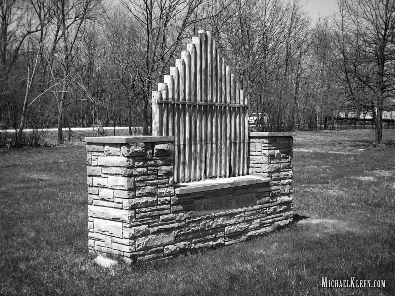 On the grounds of the cemetery there is a strange-looking monument called the “Garden of Hymns.” It is a block of sandstone slabs with several metal pipes jutting out from it, which were fashioned to look like part of a pipe organ. Local rumors claim that organ music can be heard coming from the area on clear nights.