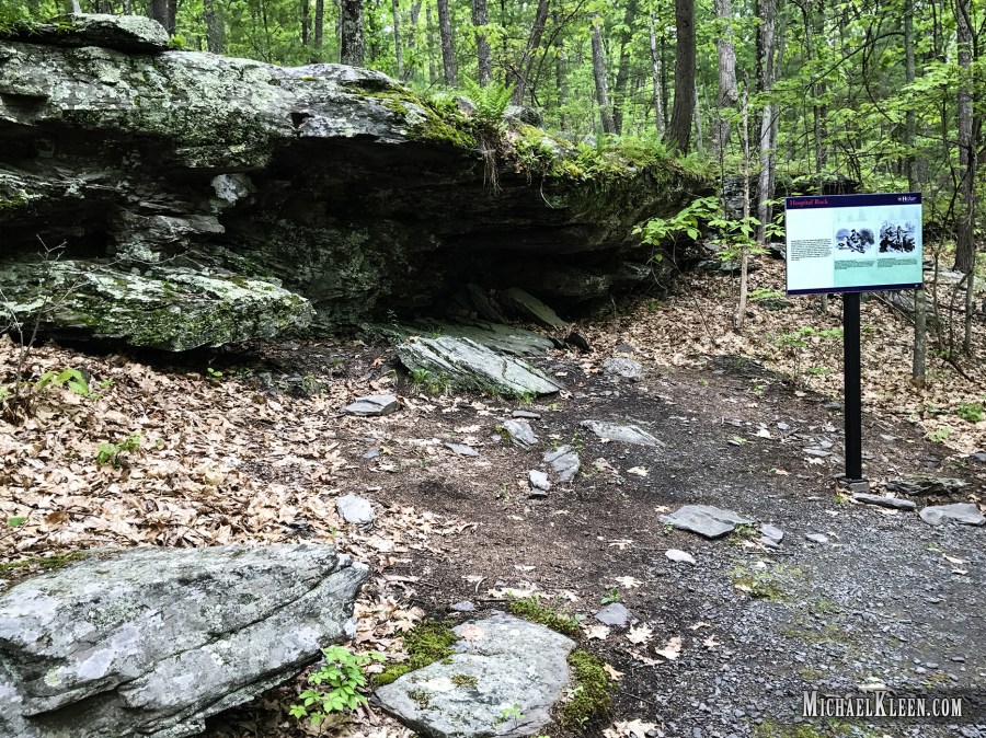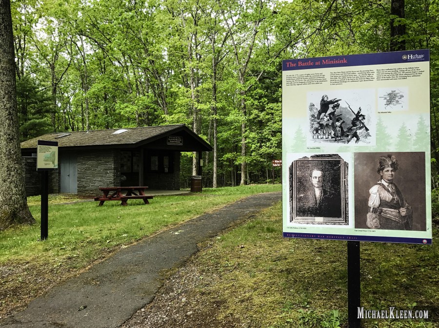 The Battle of Minisink was a failed ambush carried out by colonial militia against Mohawk war chief Joseph Brant and his volunteers during the Revolutionary War. On July 22, 1779, Lt. Colonel Benjamin Tusten and his militia set up an ambush above the Delaware River at Minisink Ford, but attacked prematurely. Brant encircled the militia who didn’t flee and won a crushing victory for the British and their allies. Today, this remote location is memorialized with walking trails, interpretive signs, and a monument.