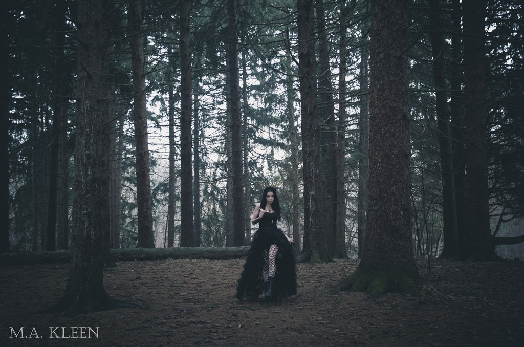 Alternative model Sara Lynn poses in a primal, goth-inspired outfit in Anna R. Page Forest Preserve in Northern Illinois. This grove of pine trees turned out to be a fitting location.