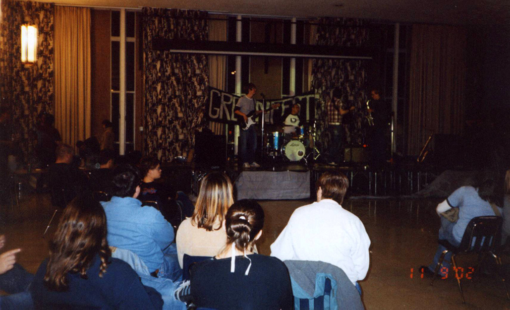 Kelly helped organize a fundraising concert aptly named “Greenfest”, which we held in the MLK University Union ballroom on November 9, 2002. It featured live bands, including The Green Jenkins featuring Ryan Groff, Empyrean, and Rebekah’s Tape, as well as a sketch comedy troupe called Lunchbox Voodoo. It was fun, but so poorly attended the Daily Eastern News’ headline was “Small crowd partakes of Greenfest offerings”. Ouch.