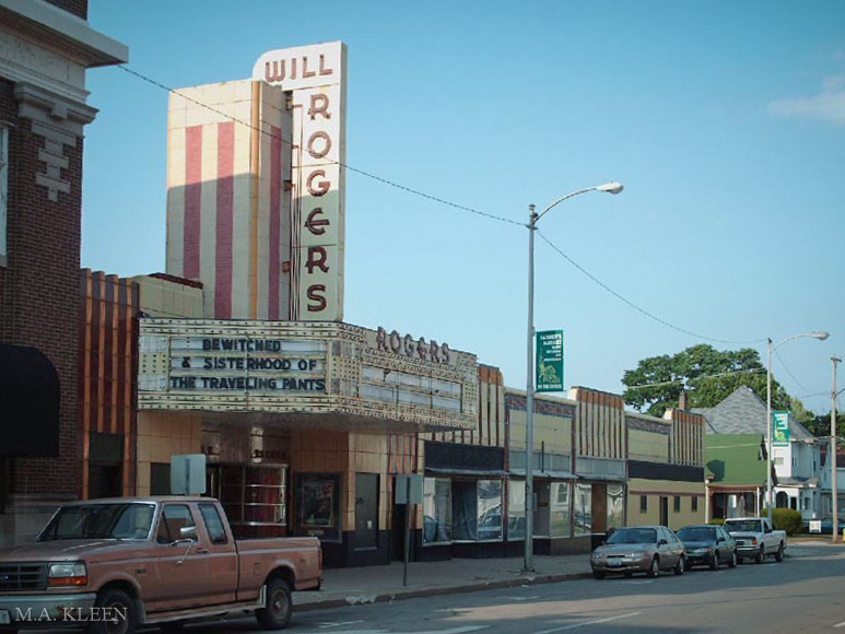 Built in 1938 at a cost of $90,000 in Art Deco style, the Will Rogers Theatre has been a fixture of downtown Charleston, Illinois for generations. It was named after William ‘Will’ Rogers, a famous Cherokee actor, humorist, and newspaper columnist of the Progressive Era who died in a plane crash in 1935. When I was an undergrad at Eastern Illinois University, my Friday night routine was to walk down to the Will Rogers and watch whatever movie had been released that week.