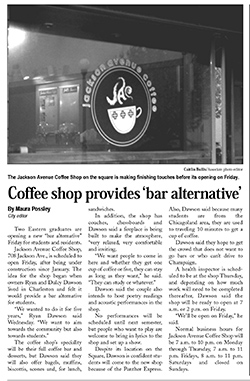 - “Jackson Ave. offers more than coffee,” Daily Eastern News (Charleston) 9 Nov. 2006.