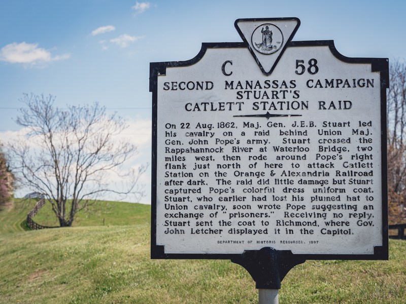 Stuart’s ego was stung by the ‘loss’ at Verdiersville. “I intend to make the Yankees pay for that hat,” he promised his wife, Flora. On August 21st, after Union Maj. Gen. John Pope moved his army north behind the Rappahannock River, Stuart proposed to General Robert E. Lee an ambitious plan to ride around Pope’s flank and cut his supply line along the Orange and Alexandria Railroad. The next morning, Stuart rode off with 1,500 troopers.