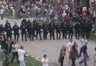 If police officers had simply intervened to stop the incident with the stop sign, everyone could have gone on partying without the situation devolving into a riot. But police had already decided they were going to use a show of force clear the street. The “West Central Illinois Mobile Field Force” didn’t show up in full tactical gear with a sound canon not expecting to use it. Why was any of that necessary for a student block party? Rather than ensuring everyone have a good time while keeping the peace, police made a conscious decision to escalate the situation far beyond the force required to deal with a couple rowdy twenty-somethings.