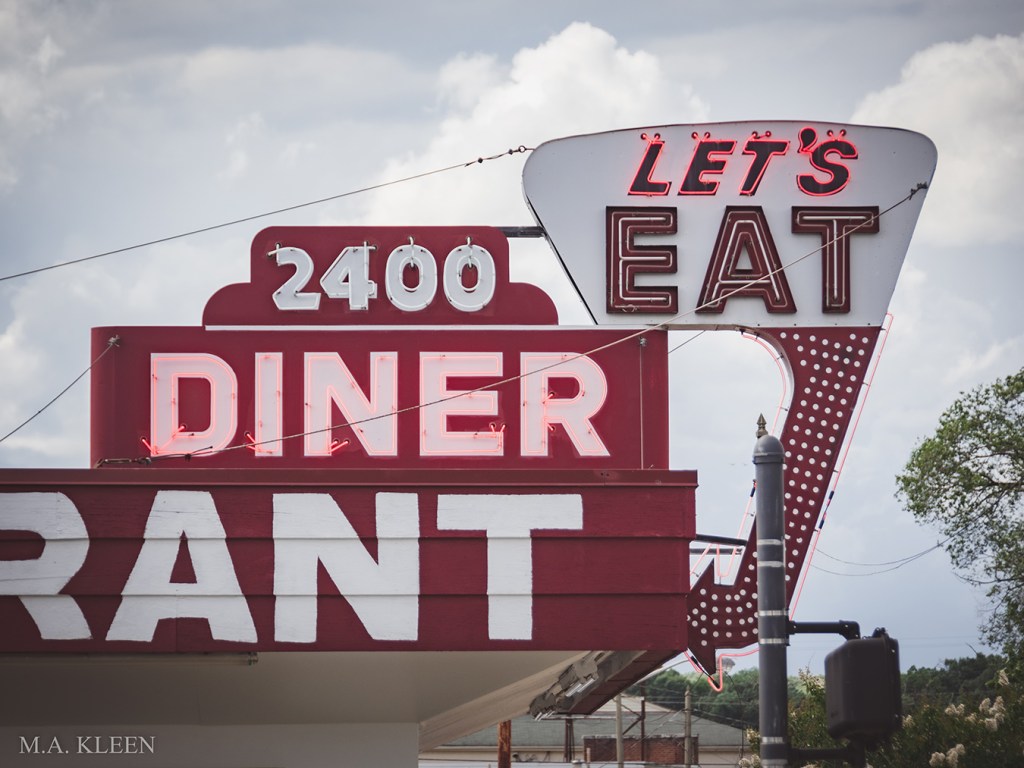 Neon sign for the Twenty Four Hundred Diner, 2400 Princess Anne Street in Fredericksburg, Virginia.