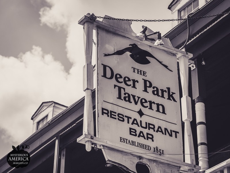 Many sources, particularly online, refer to Deer Park Tavern as “haunted” but few offer specifics. According to Hauntedhovel.com, “staff have reported on many occasions the bar stools dragging themselves across the floor and falling over on their own. Items behind the bar get rearranged when no one is there to relocate them.” The website also mentions the ghosts of an outlaw who was gunned down in the street outside the former hotel and an elderly woman who frequently stayed there. Neither of these two incidents can be substantiated.