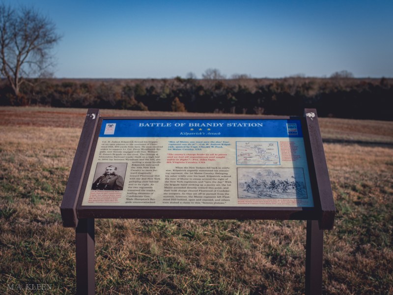 Brandy Station Battlefield Park is open from dawn to dusk. Admittance is free. The parking area for Buford’s Knoll Walking Trail is located off Beverly Ford Road at GPS coordinates 38.532069, -77.858115. The parking area for Saint James Church Walking Trail is located at the intersection of St. James Church and Beverly Ford roads at GPS coordinates 38.521490, -77.866102. And the Fleetwood Hill parking area is located off Fleetwood Heights Road at GPS coordinates 38.509534, -77.879728.