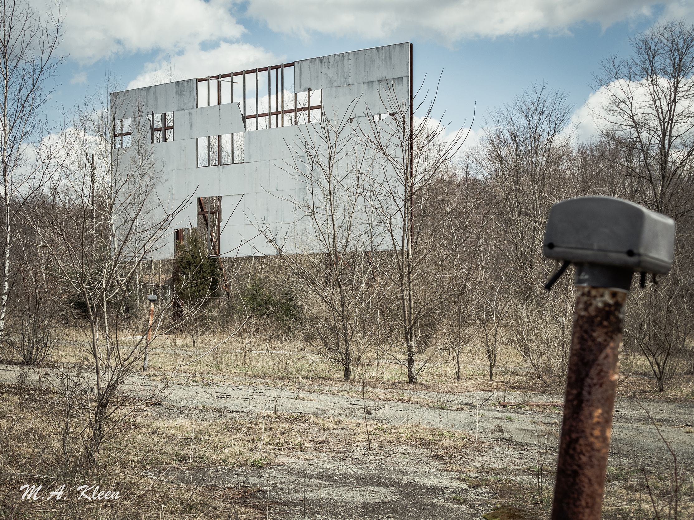 Mountain Drive-In, off NY State Highway 52, east of Liberty, New York, silently sits in ruins like a scene from the Fallout series. A faded sign still advertises “Mountain Fest ’97”, so I assume that was when it closed. According to Cinema Treasures, it opened in 1951 and once had three screens.