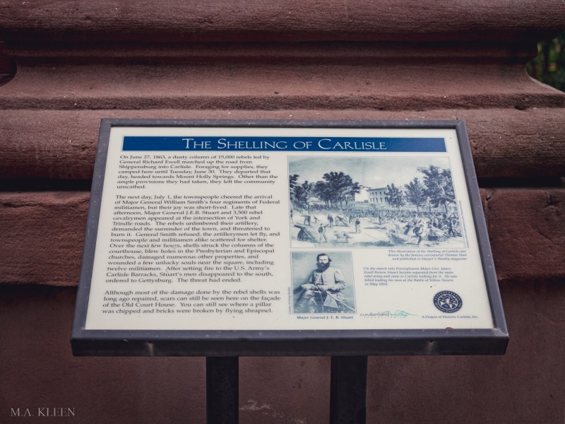 The Battle of Carlisle was fought on July 1, 1863 between Union militia forces commanded by Maj. Gen. William F. “Baldy” Smith and Confederate cavalry commanded by Maj. Gen. J.E.B. Stuart in Carlisle, Pennsylvania during the American Civil War. This inconclusive skirmish, part of the Gettysburg Campaign, resulted in approximately 21 total casualties and the destruction of Carlisle Barracks. The next day, Stuart reunited with General Robert E. Lee’s army at Gettysburg, too late to have a significant impact on that battle.