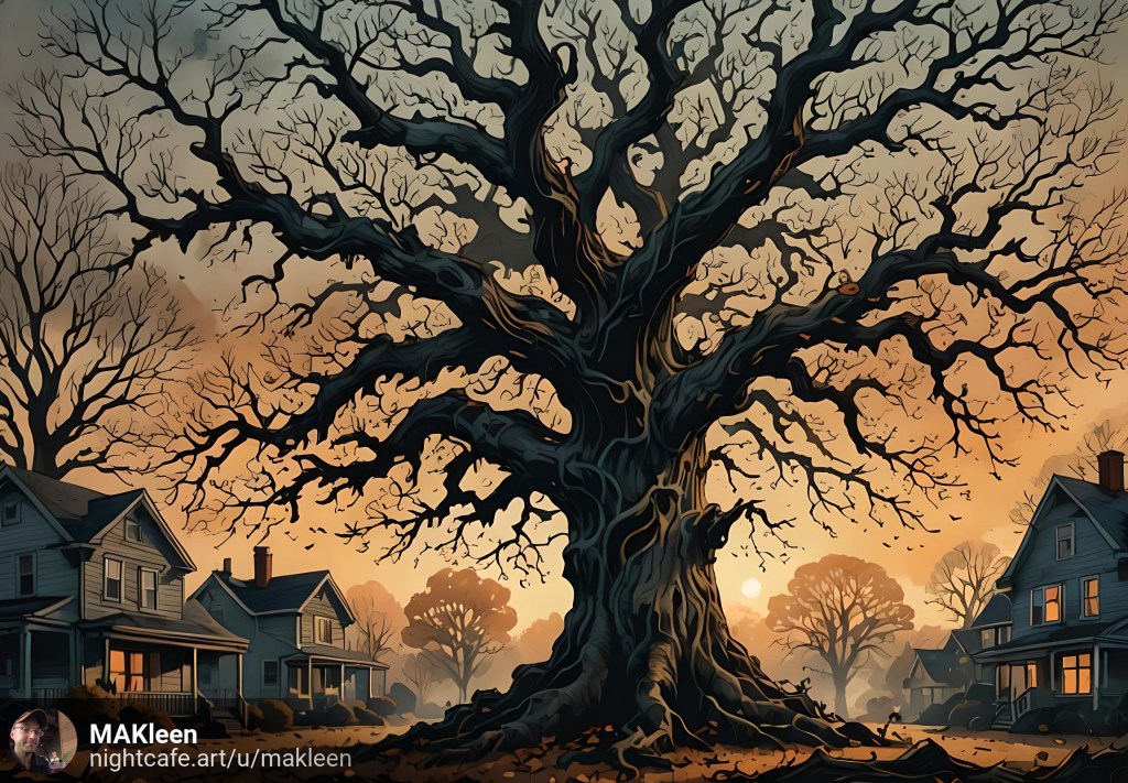 “Feels different tonight,” John murmured, his gaze sweeping over the quiet neighborhood. Emily nodded, her eyes drifting to the large oak tree in the center of the park across the street. The tree had always been there, an ancient sentinel watching over the neighborhood for as long as anyone could remember. Standing under the silvery glow of the setting sun, something about the tree seemed different. The shadows around it danced unnaturally as if the tree itself held secrets.