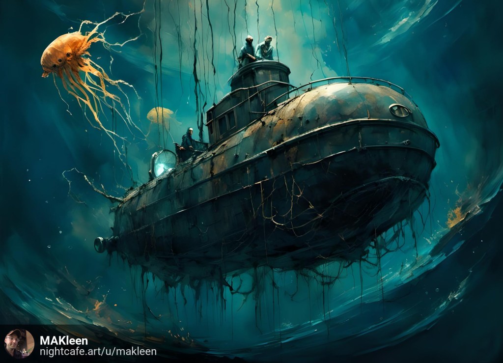 A low creak from the Melancholia’s hull made both men tense. The ship had been groaning more frequently over the past day, as if protesting their journey. The captain had said it was the deep pressure—there were whispers of the trench pulling on the ship, dragging them ever closer to its heart.