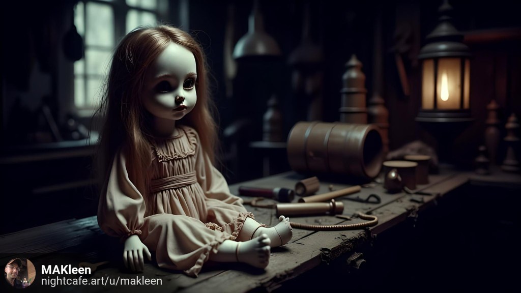 The workshop was unlike any place Lydia had ever been. Shelves lined the walls, each crowded with dolls of all shapes and sizes. The air was thick with the smell of varnish and old wood, mingled with a faint sweetness, like decaying flowers. Sunlight filtered weakly through the grime-covered windows, casting long shadows across the room. Every surface was cluttered—tools for carving, paints, brushes, and fabrics were strewn about haphazardly. But it wasn’t the disarray that unnerved Lydia.