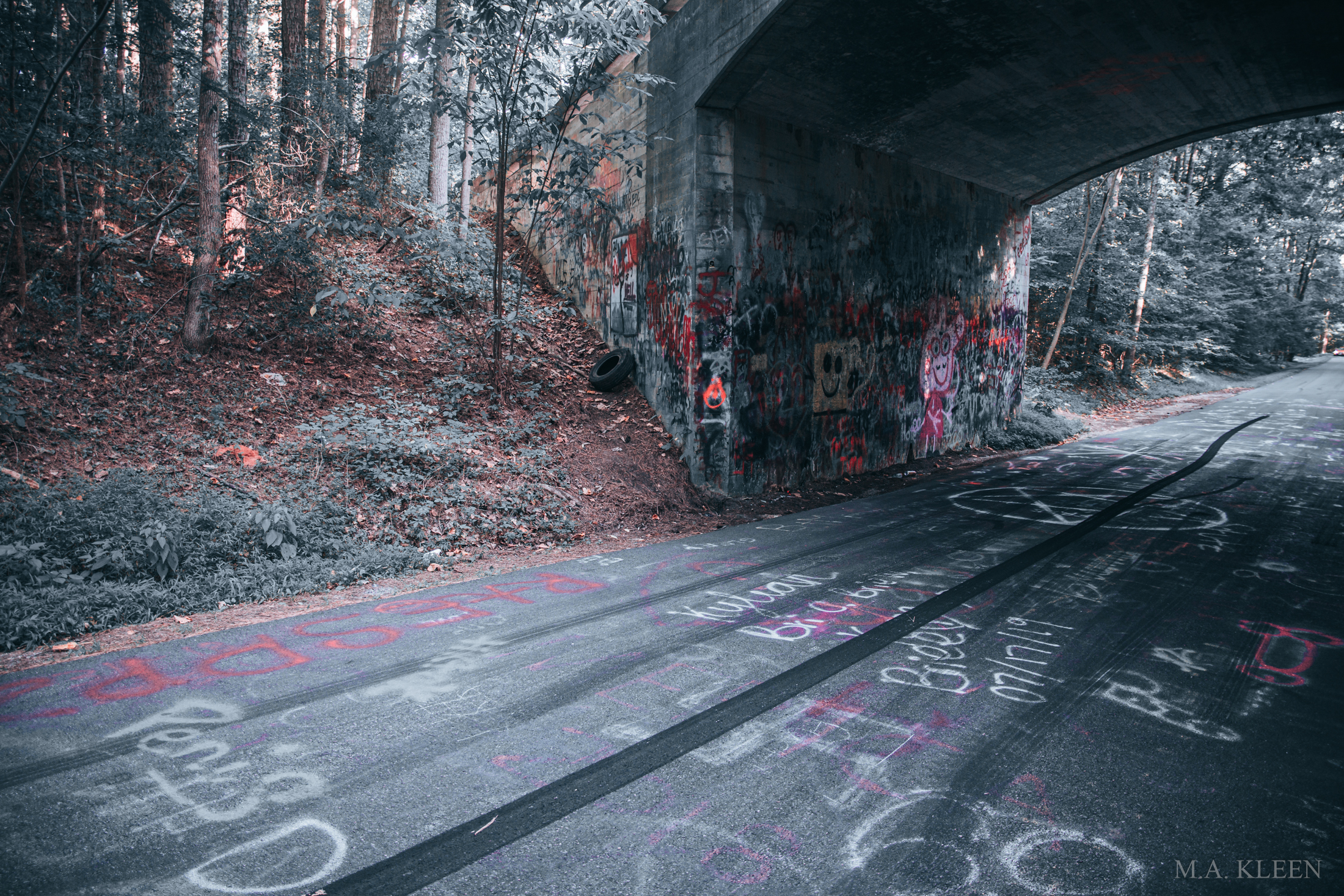 The most popular legend surrounding Crawford Road Bridge involves a young bride forced into a loveless marriage. Rather than spend the rest of her life with a man she loathes, the woman hanged herself from the Tour Road overpass. Since then, a ghostly woman in white can be seen standing on the bridge, only to reenact her sickening plunge. Cars swerve to avoid a lone specter in the road, or experience engine trouble while driving through the narrow tunnel.