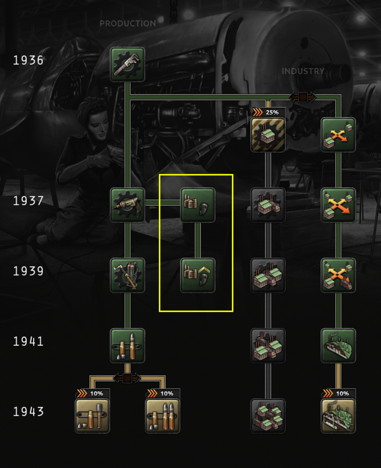As mentioned earlier, the latest update made significant changes to the industrial technology tree. It replaced the two equipment conversion techs with coal-related technology, and moved equipment conversion bonuses into the Machine Tool line.