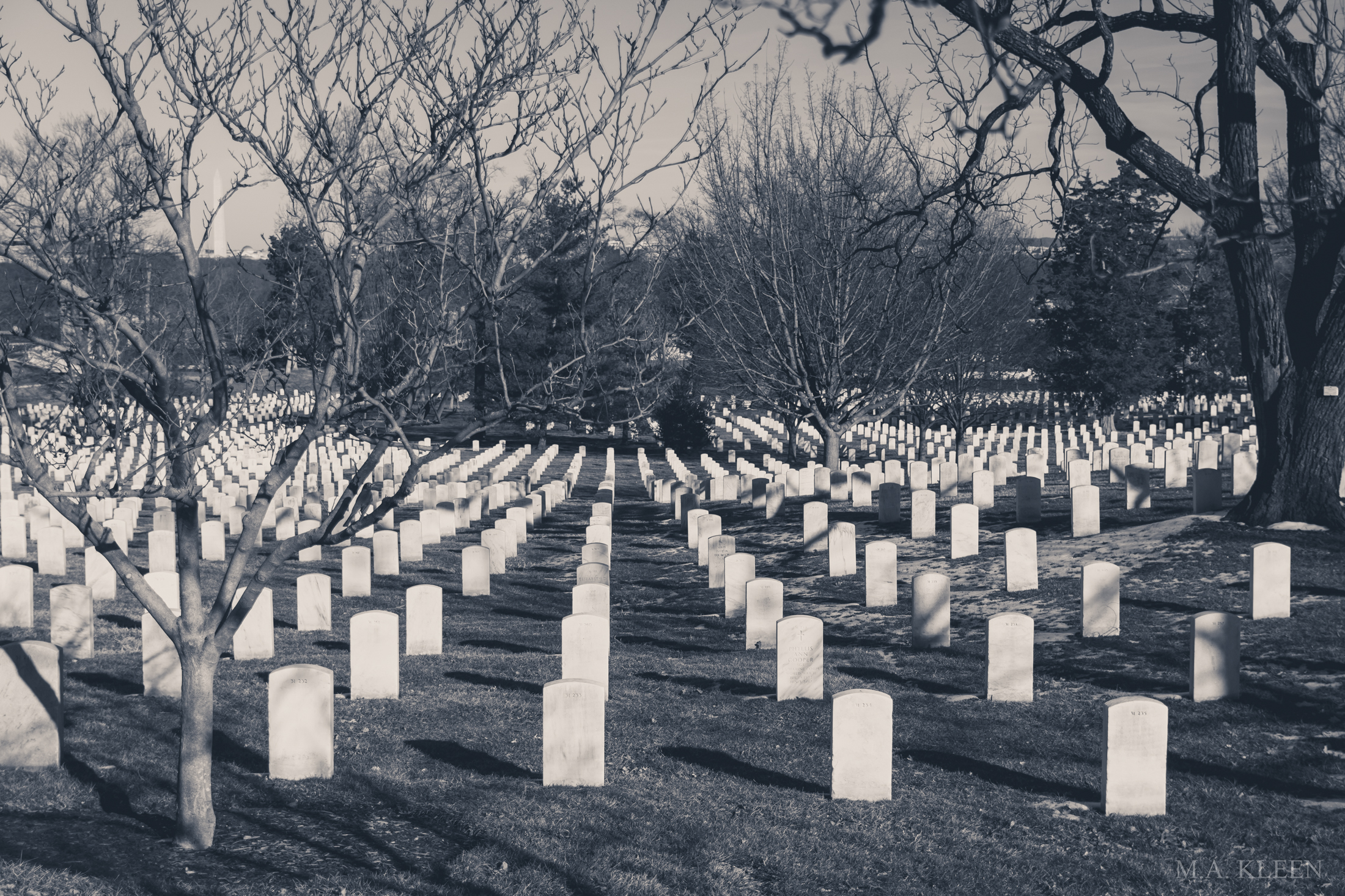 Arlington National Cemetery along the Potomac River in northern Virginia is the premier burial ground for select U.S. military members and their families. Over 400,000 people are interred within its sloping 639 acres, including President John F. Kennedy, astronaut John Glenn, Major General Philip Kearny, and Associate Supreme Court Justice Ruth Bader Ginsburg. Its origin dates to the American Civil War, when federal troops seized Arlington House from Robert E. Lee and his wife Mary Custis. Tens of thousands of war dead needed a place to be buried, and the estate of a Confederate general seemed like a fitting place.