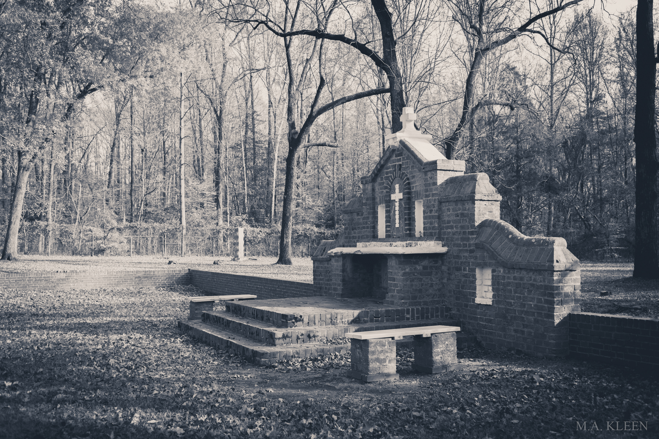 Hidden in the woods along Telegraph Road in Stafford County sits the Brent Family Cemetery, the last remaining vestige of the first English Catholic settlement in Virginia. The Brent family came to Colonial Virginia in 1647 and thrived for over a century before moving on. In the 1930s, the Catholic Archdiocese of Richmond built a brick and stone altar in the cemetery in their honor. But with its isolated location, and discovery of a woman’s remains along the trail in 1998, rumors swirled that Satanists used it for darker purposes.